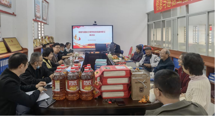 老教师们深情回顾了学院初办时的艰难岁月,同时表达了自己的心声:看到学院日新月异,学科建设、人才培养、师资队伍建设等工作取得了显著的成绩,身为信息人感到骄傲与幸福。他们感谢学院对退休老同志的亲切关怀,并表示在晚年生活中,将继续发挥余热,为学院发展做力所能及的事。座谈会最后,学院为退休教职工送上了春节慰问品,祝愿老教师身体健康,阖家幸福!
