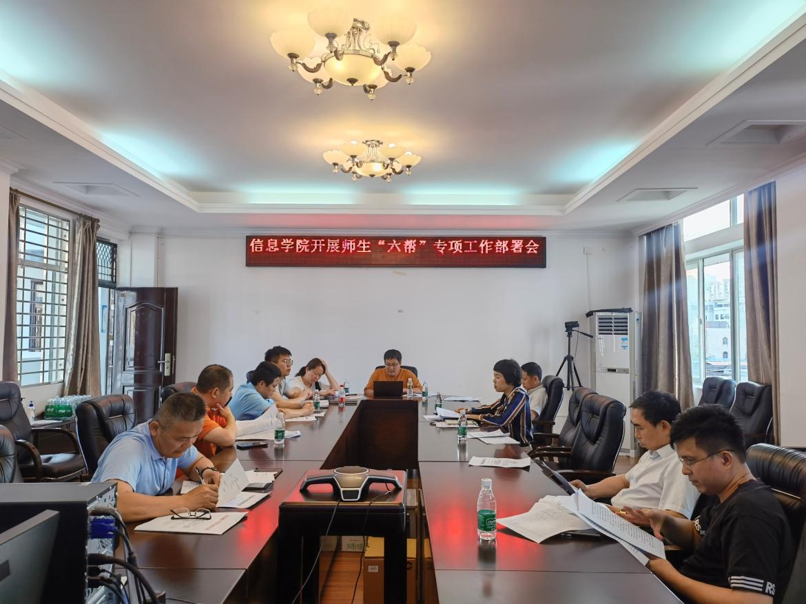 为深入贯彻落实beat365中国官网“六帮”专项工作会议要求,全面落实立德树人根本任务,切实解决当前师生面临的实际问题,助力师生成长成才,3月17日下午,信息学院召开师生“六帮”工作部署会,学院党委书记蒙秋妍、副书记王茂钢、副院长张永辉、王咸鹏,各系室主任、毕业班班主任和学工办全体老师参加了本次会议。
