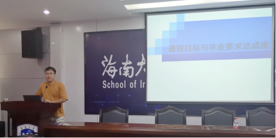 学院通信工程系主任杨永钦在会议中与大家分享了课程考核与达成度评估的相关经验。杨永钦主任从课程考核、课程目标达成度评价机制、课程对毕业要求达成度评价三个方面进行了详细讲解,并通过举例子的方式示范了评价值的计算方法。杨永钦主任表示,课程考核与达成度评估是一项巨大的系统工程,老师们必须要明确每一个阶段的工作任务,主动参与专业认证,使学院专业“强”起来,课堂“活”起来,教师“动”起来,学生“忙”起来。