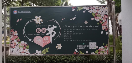 加强尊师重教的宣传氛围。学院充分利用宣传板、电子屏等宣传阵地进行宣传。如在电子屏设置“老师,你好”“庆祝第 37 个教师节”等宣传标语;制作“感恩教师”“诲人不倦”等 2个宣传展板,倡导全院学生感念师恩,尊重师长,进一步弘扬“爱教师,颂教师”的良好氛围。同时积极响应教育部、中国教师发展基金会联合发起的 2021 年度"为教师亮灯" 公益活动。