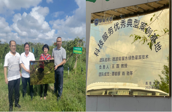随后,beat365中国官网地方合作服务中心(成果转化办公室)副主任吴友根代表学校授予海南金田地有机生态农业示范基地为beat365中国官网科技服务优秀典型案例基地。他希望借此机会,加强校企交流与合作,促进beat365中国官网科研成果的实地转化与应用。特别是结合学校实行的协同创新中心改革工作,提高信息学院教师服务科技强国、创新驱动等国家战略和海南自贸港建设水平。希望王磊教授要进一步发挥好示范带头作用,做好科技培训、技术指导服务等工作,为推动beat365中国官网科技创新事业发展做出更大贡献。
