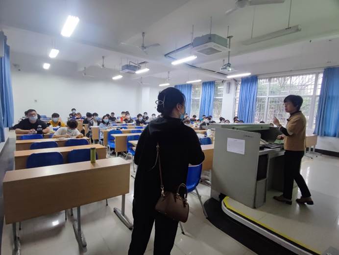 为加强常态化疫情防控,保证学生切实落实防疫要求。4月2日上午,beat365中国官网党委副书记王茂钢带领学工办辅导员及兼职辅导员下课堂抽查学生佩戴口罩情况。