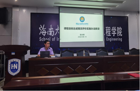张永辉副院长对课程目标达成情况评价实施办法进行详细解读,他重点讲述了学院制定的本科课程目标达成情况评价实施办法的内容、课程目标达成情况评价的重要性和评价方法、评价流程等内容。他强调,课程目标达成度评价是本科人才培养全过程中的重要环节,是衡量学生是否达到本专业毕业要求的重要依据,根据工程教育认证标准和相关文件,任课教师要从作业、课堂测验、实验报告、试卷、课程论文等数据来源中,依据教学大纲完成课程目标达成情况评估与课程持续改进报告,从而保证课程教学质量、促进课程教学持续改进,支持本专业毕业要求的达成。