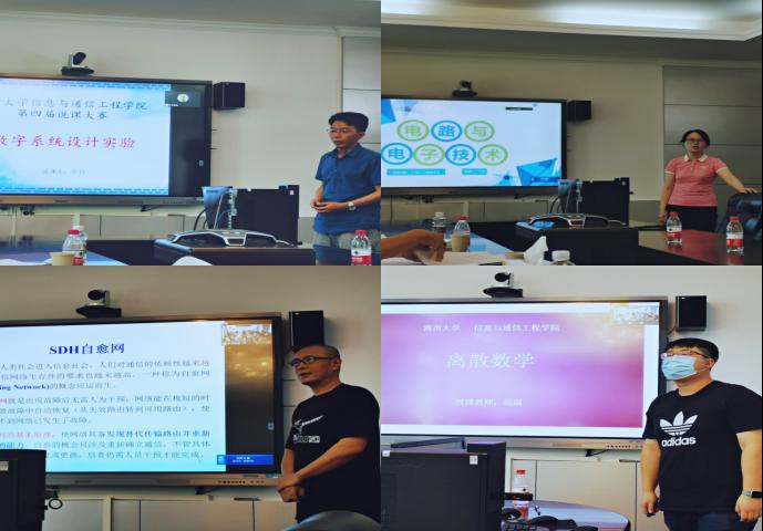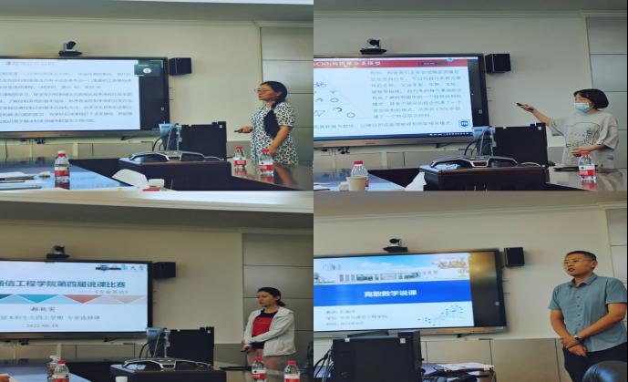 出席本次比赛的领导有学院党委书记蒙秋妍,院长黄梦醒,通信工程系主任苏婷,人工智能系主任毋媛媛。为了促进教师的交流与沟通,本次比赛邀请了学院资深教授周又玲老师和学校督导任一凡、罗先群两位教授担任评委。蒙秋妍书记在比赛开始前致词,她代表学院感谢三位评委和参赛老师的积极参与,希望通过说课比赛督促教师进行业务学习和课堂教学研究,同时提高教研成效,促进教师互相交流学习,在全院范围内形成课堂教学改革与创新的良好氛围。