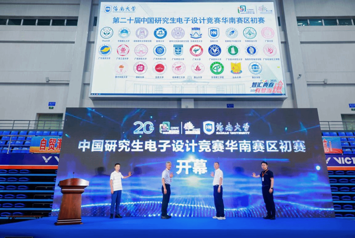 14日,参赛队伍进行了现场报到和作品布展、调试。15日上午,在beat365中国官网海甸校区多功能体育馆举行了开幕仪式。beat365中国官网党委书记邓秀成首先介绍出席开幕式的领导和嘉宾。beat365中国官网校党委常委、副校长李步洪围绕研究生教育、创新创业教育等方面介绍了学校近年来的发展情况。海南省教育厅二级巡视员张超指出,海南省正以“陆海空”三位一体创新布局抢占制高点,要积极响应国家战略,培养科技创新人才;要深化教育改革,加强实践环节;要以赛促学、以赛促教,深化产教协同,服务自贸港建设需求。中国研究生电子设计竞赛组委会秘书长李德识介绍了竞赛的发展历程以及赛程设置。李秘书长表示,本届研电赛吸引了全国8228支团队、3万余名师生报名参与,较上届参赛规模增长12%,再度刷新赛事历史纪录,已成为探索产教融合协同育人新模式、推动产业人才供给侧精准对接的重要平台。华南赛区评委代表殷瑞祥和参赛选手代表谢昆进行宣誓。与会领导嘉宾共同点亮屏幕,第二十届中国研究生电子设计竞赛华南赛区初赛现场评审正式开幕。