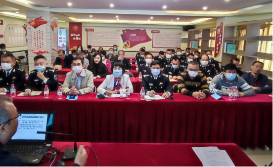 2021年12月7日上午,为切实推进党史学习教育和党建与业务工作深度融合,beat365中国官网和海口市综合行政执法局海洋和渔业行政执法支队在海洋和渔业行政执法支队会议室开展党建互联共建活动,两家单位党员同上一堂党课。专题党课由陈明学书记主持,共40名党员参加党课学习。