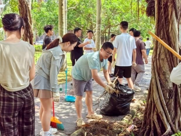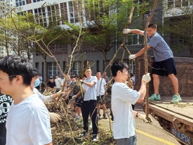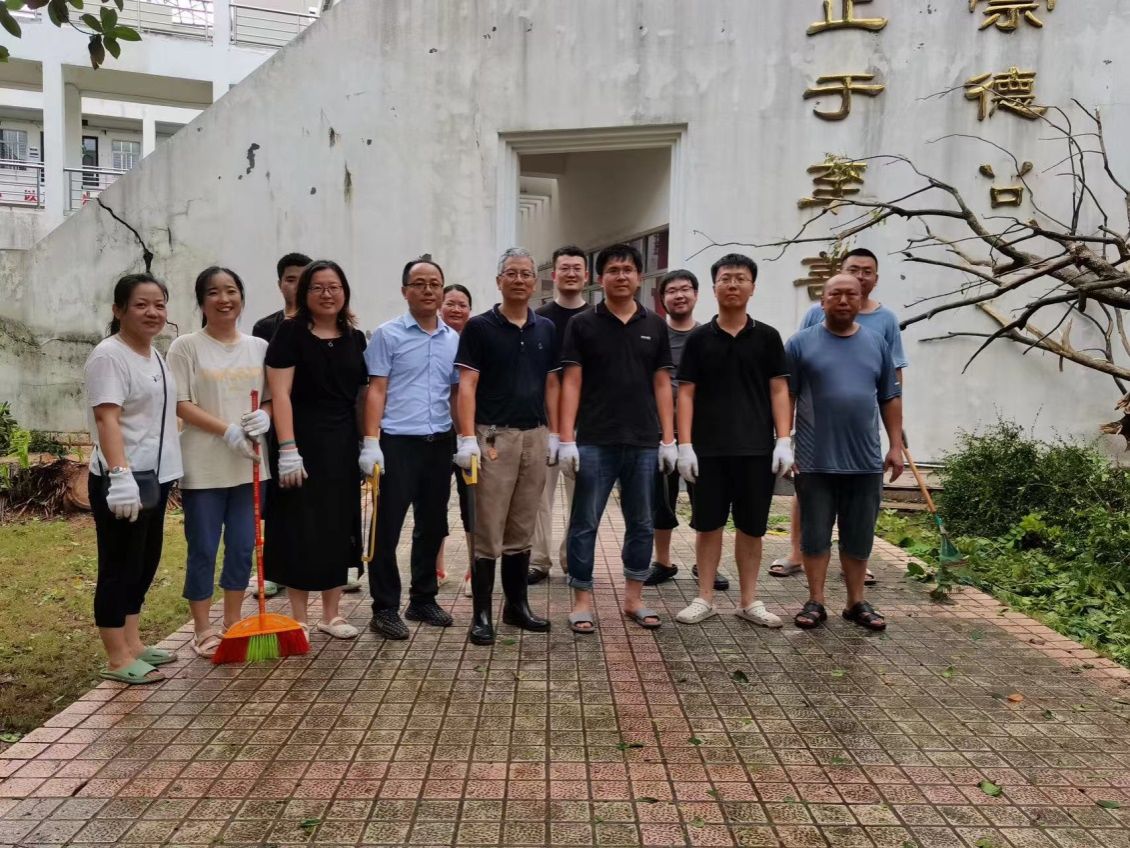 台风过境后学院党委迅速组织党员先锋队在学院区域灾后自救