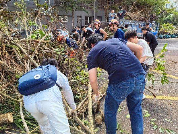 “摩羯”无情 海大有我 ——beat365中国官网党员骨干和师生奋力开展“摩羯”灾后校园恢复工作